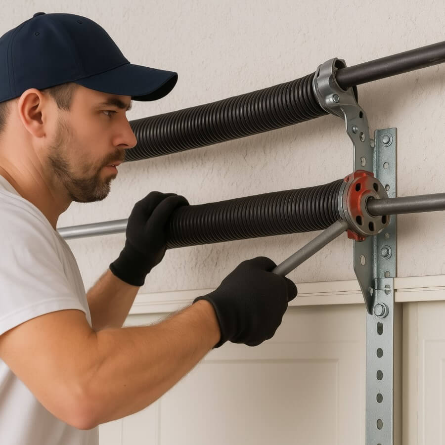 The best time for garage door spring replacement is before they snap. If your door is making grinding noises or moving slowly, a professional garage door tune-up can identify weakened coils. Applying professional synthetic silicone lubricant helps reduce the friction that leads to snapping during peak summer heat.